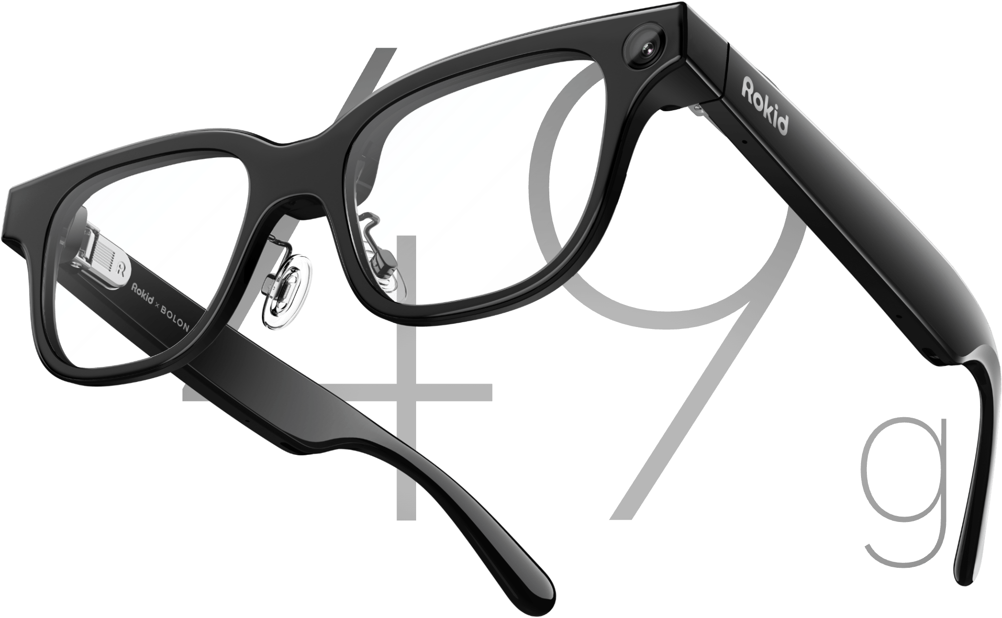 整机重量仅49g,一副普通太阳镜的重量,⼈性化⿐托及镜腿设计, 久戴不累更舒适。